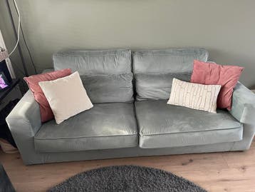 Deze comfortabele groene bank is perfect voor elke woonkamer. De zachte stof en ruime zitplaatsen zorgen voor een heerlijke plek om te ontspannen. De bank is in goede staat en komt uit een rookvrij hu