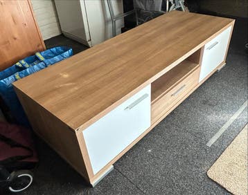 Gratis tv meubel. 160X58x41 heeft gebruikerssporen. Deurtjes zijn wit gefolied.
