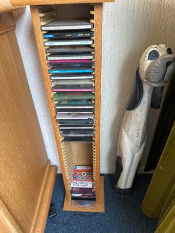 Mooi en compact cd rek van licht eikenhout. Perfect om je cd collectie georganiseerd te houden. Geschikt voor diverse cd's.