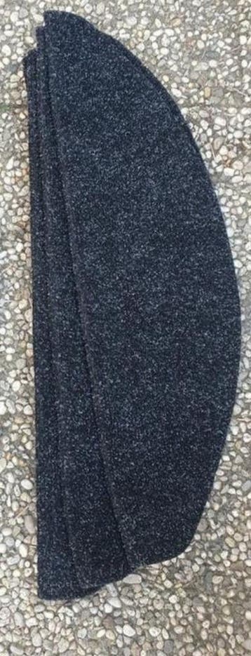Ongeveer 30 stuks halve maan tapijt voor traptreden. Ze zijn zo goed als nieuw, gemonteerd geweest maar na enkele maanden weer losgehaald ivm traprenovatie. Genoeg voor twee trappen. Snel ophalen ande