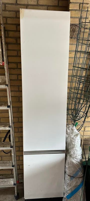 Deze witte keukenkast met legplanken is al heel wat jaartjes oud en doet al lang dienst als opbergkast in de garage. Hij is 202 cm hoog, 35 cm diep en 44 cm breed. Met veel gebruikssporen dus goed ges