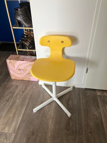 Deze vrolijke gele kinder bureaustoel is perfect voor de studeerkamer of speelhoek. De stoel is in goede staat en biedt comfortabele ondersteuning voor uw kind tijdens huiswerk maken, knutselen of gam