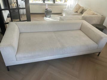 Deze moderne tweepersoonsbank in een elegante crèmekleur is de perfecte aanvulling op elk interieur. De bank verkeert in goede staat en biedt comfortabele zitplaatsen voor twee personen. Met zijn stra