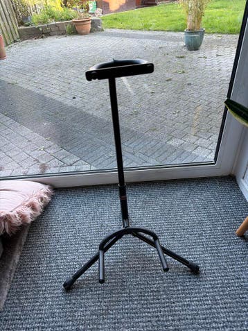 Zwarte gitaarstandaard in goede staat. Ideaal voor het veilig opbergen van uw gitaar thuis of in de studio. Stevig en stabiel ontwerp.