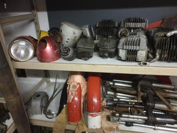 . Zitten aantal frames bij waaronder 1 splinternieuw in de verpakking ,aantal spatborden waaronder ook div nw, aantal motorbeplatingen waar ook aantal nw in de verpakking ,6 grote naven, schijfrem wie