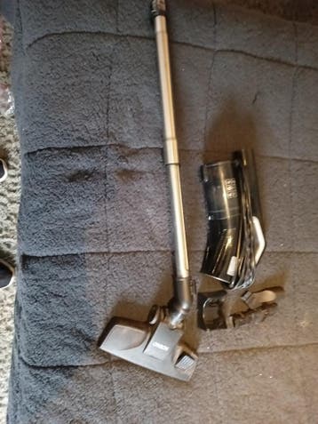 Gratis af te halen: stofzuiger met accessoires. De stofzuiger is zwart en heeft een zilverkleurige stang. Er zitten ook een paar opzetstukken bij. Werkt nog goed, moet alleen iets worden bedacht om de