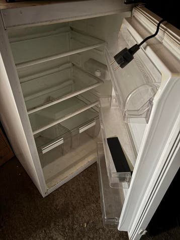De tafelmodel inbouw koelkast is niet meer mooi maar werkt wel. Misschien nog een tweede leven in een schuur ofzo. Hij moet nog wel even een schoonmaakbeurtje hebben ☺️ maar je kan hem gratis ophalen.