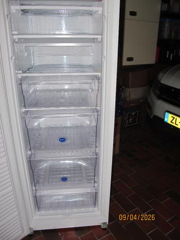 Vrieskast , 1,59 hoog, breed 58 cm, diep 60 cm. 4 Laden, 2 kleppen. De kast is wel oud, maar doet het goed, moet wel regelmatig worden ontdooid. Geen non frost. Moet wel worden gehaald.