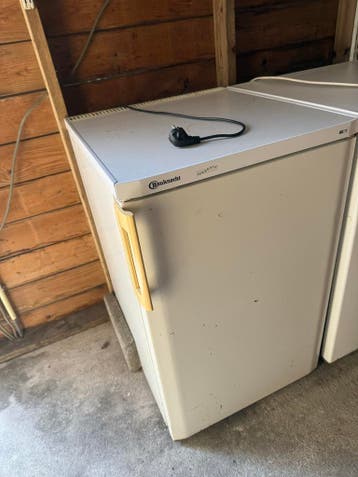 Deze bauknecht koelkast heeft een klein vriesvak bovenaan. De koelkast heeft twee planken en een lade onderin. Er is ook opbergruimte in de deur. De koelkast is wit van kleur.