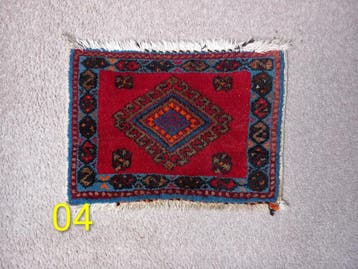 Kleedje 4 wollen kleedje , rood , 45 x 30 cm prijs € 3,00 kleedje 5 perzisch kleed , bruin , met slijtageplek, 99 x 51 cm met franje 99 x 51 cm prijs €4, 00 kleedje 6 kleedje uit india , dik