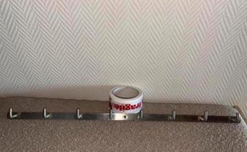 Mooie zilverkleurige wandkapstok met meerdere haken. Ideaal voor jassen, tassen of andere accessoires. Eenvoudig te monteren aan de muur. In goede staat.