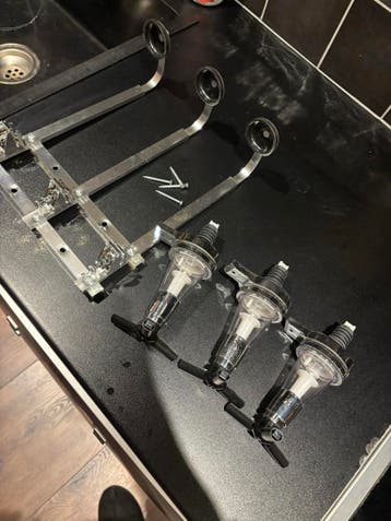 Gratis af te halen, drank dispenser. Zelf schoonmaken. De dispenser is van metaal en kunststof. Er zitten drie schenkers bij.