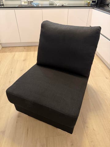 Praktisch verlengstuk van een bank, ook perfect te gebruiken als losse stoel. De stoel is bekleed met een duurzame zwarte stof en heeft compacte afmetingen van 75 cm breed, 92 cm diep en 90 cm hoog. I