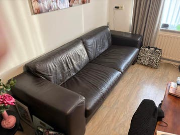 Gratis op te halen: een comfortabele bank in redelijke staat. De bank is gemaakt van leer en biedt plaats aan drie personen. Ideaal voor een gezellige avond thuis. De bank heeft wat gebruikssporen en