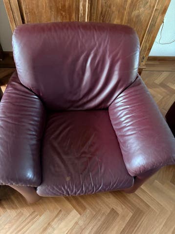 Bank + 2 stoelen + 2x leren hocker