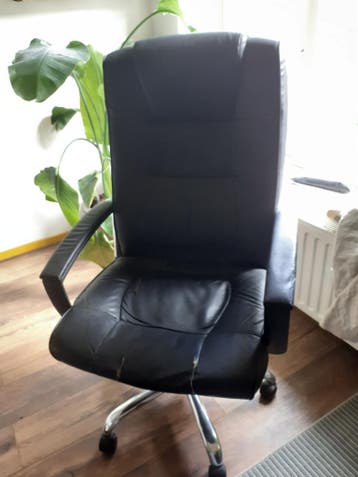 Zwarte bureaustoel, zit lekker im te gamen. Wieltjes rollen goed. Zitting is beschadigd. Gratis ophalen in leeuwarden