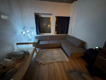 Gratis af te halen: een comfortabele grijze hoekbank. De bank is gebruikt en heeft een lichte vlek, zoals te zien op de foto. Ideaal voor een studentenkamer, eerste woning of als extra zitplek. De kus