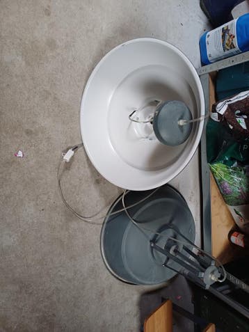 Grijze hanglampen, 45 bij 47 cm.