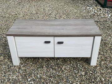 Stijlvol tv-kastje met een moderne uitstraling, perfect voor elke woonkamer. Het kastje is voorzien van twee handige deurtjes voor het opbergen van afstandsbedieningen, kabels en andere media-accessoi