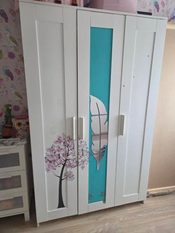 Kledingkast. Gaat weg ivm veranderen kamer. Kast vertoont gebruiksporen. Verdiend wel weer een likje verf. Wie maken we er blij mee? Gratis! Wordt gedemonteerd om makkelijker te vervoeren. Zonder de i