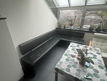 Hoekbank van leer afmetingen: lengte (lange zijde) ca 190 cm lengte (korte zijde) ca 165 cm hoogte ca 88 cm breedte ca 58 cm kleur: antraciet