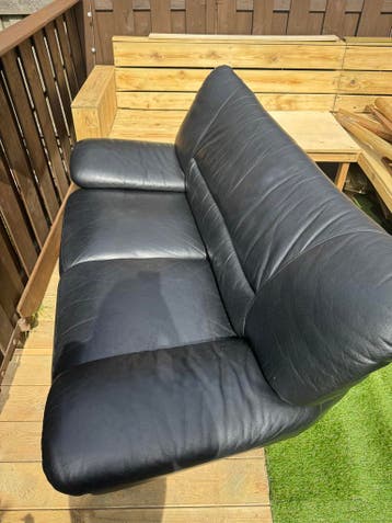 Comfortabele zwarte tweezitsbank van leer. De bank is gebruikt, maar verkeert nog in goede staat en biedt een stijlvolle toevoeging aan elk interieur. Ideaal voor een knusse zithoek. Vaandag ophalen !