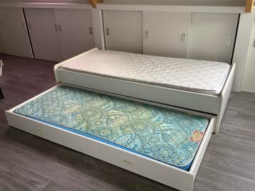 2 matrassen gratis af te halen inclusief molton deken en hoeslaken voor beide. Matras 1 (wit) : 90x200cm matras 2 (blauw) : 80x185cm