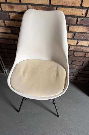 Nog een prima stoel maar de zitting is niet zo netjes meer. Zie foto. Misschien nog op te knappen? Mag daarom gratis weg. De rest van de stoel is keurig op de zitting na.