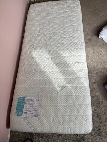 2 eenpersoonsmatrassen, zien er goed uit! Niet lang in gebruik gehad en altijd matrasbeschermer erop gehad. Doen we weg omdat we voor beide voor tweepersoonsbed hebben gekozen.