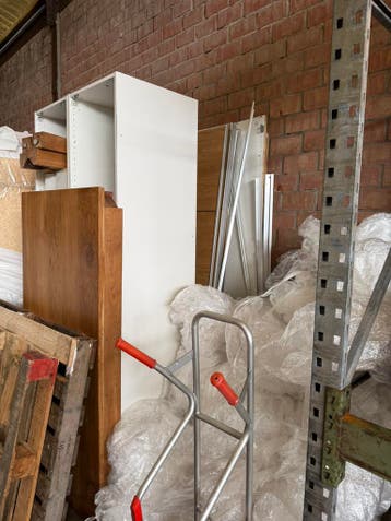 Hoge ikea pax kast met twee deuren en twee deuren reserve 2 x houtkleur 2 x wit de kast is een hoge 2.40 Hoog met lades schappen en roede heeft lichte transport schade daarom gratis in de buurt van en