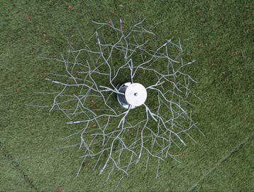 Deze kroonluchter heeft een takkenfiguur met meerdere lichtpunten. Het is een opvallend armatuur dat een unieke sfeer geeft aan de ruimte. De lamp is gemaakt van metaal en heeft een zilverkleurige afw