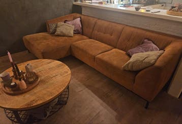 Deze hoekbank is 280cm bij 150cm en heeft een zithoogte van 40cm. De bank is gebruikt en heeft wat vlekken. Een grondige stoomreiniging zou de bank weer als nieuw kunnen maken.