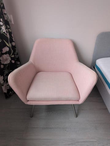 Zit heerlijk, moet weg. Stof is verkleurd op de leuningen en heeft wat vlekken.