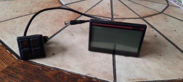 Dit is een stella display met de bijbehorende bediening. Het display heeft een zwart frame met een rode streep bovenaan en het stella logo. De bediening heeft vier knoppen met symbolen. 3 Pins aanslui