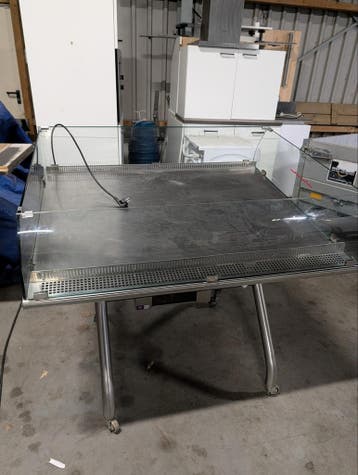 Professionele koelvitrine, ideaal voor horeca, retailvof andere commerciële toepassingen. Afmetingen: 120cm breed, 100 diep, hoogte instelbaar defect, waarschijnlijk moet er een nieuwe thermostaat in