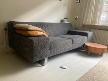 Grijze 2 1/2 zits bank. Zitten wat brandgaten in en is wat ouder maar is gratis af te halen