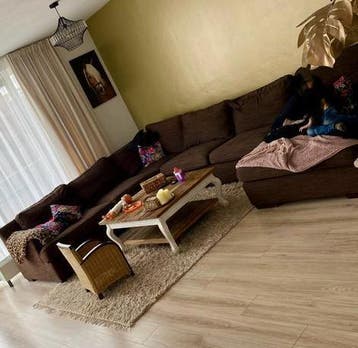 Moet 1 trap na beneden 353 breed bij 280 cm en lounge 160 cm bank is in 4 delen