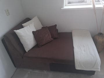 Bank 150cm lang met lichte beschadiging van het leer ip de armleuning
