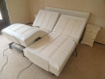 2 losse bedstukken, elektrisch verstelbare rug en voetstukken. 200 X 90 cm per bedstuk