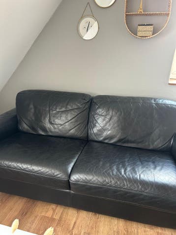 Zwarte leren tweepersoonsbank