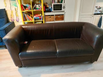 Bruine leren bank, zit nog heel goed. Af te halen in lunetten. Doen we weg wegens een nieuwe bank. 200X80x100cm