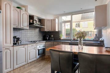 Gratis op te halen mooie en complete l-vormige keuken, inclusief diverse inbouwapparatuur zoals een oven, kookplaat, vaatwasser en afzuigkap. De keuken is in goede staat en biedt veel opbergruimte. Af