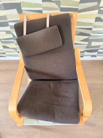 2 ikea stoelen, bruin, 10 jaar oud. De leuning aan de bovenkant zit wat los.