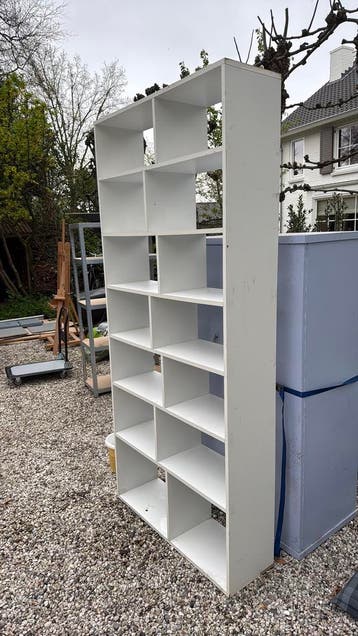Vakkenkast, handig voor op zolder of garage. Gratis ophalen. Nog even poetsje erover. Breedte 100cm, hoogte 2,20cm en diepte 30cm