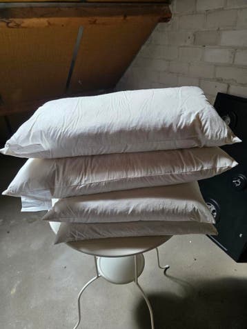 Hier zijn 6 witte binnenkussens. Twee van de kussens zijn wat groter dan de andere vier. Ze zijn allemaal wit van kleur.