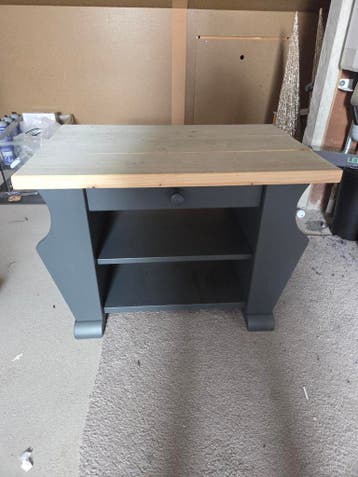Kastje met vlek op de onderste plank. De bovenste 3 planken zijn er zelf opgezet. Dit zit stevig en ziet er mooi uit. Het kastje is geverfd. De knop is voor de sier, het is geen lade.
