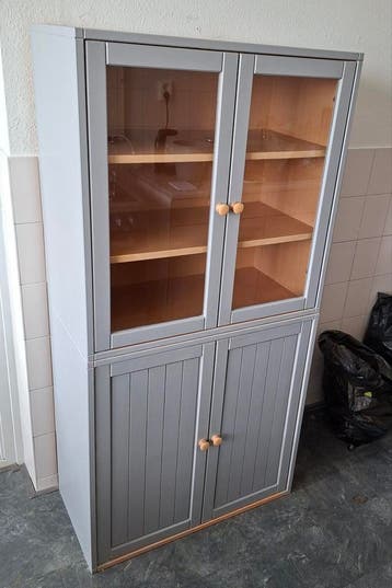 Gratis ophalen in zwijndrecht zo snel mogelijk. Vitrinekast bestaat uit 2 losse delen. Is grijs geverfd maar kan in je iedere kleur verfen. Hoog 1.59 Breed 80 cm diep 40 cm