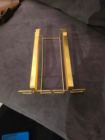 Stijlvol wijnrek voor aan de muur of in een kast. Geschikt voor meerdere flessen. Gemaakt van metaal met een goudkleurige afwerking. Ideaal voor het opbergen van je favoriete wijnen.