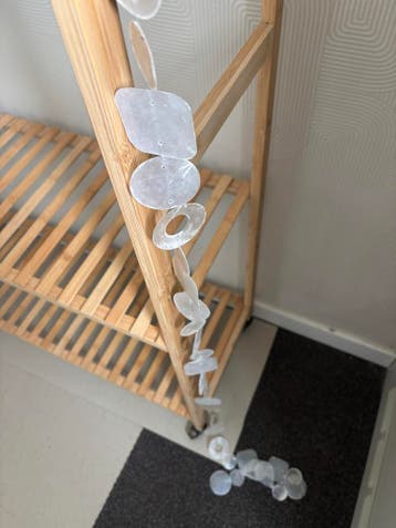 Mooie decoratieve slinger gemaakt van schelpen in verschillende vormen en maten. Ideaal om een natuurlijke en rustgevende sfeer te creëren in elke kamer. De slinger is in uitstekende staat en klaar om