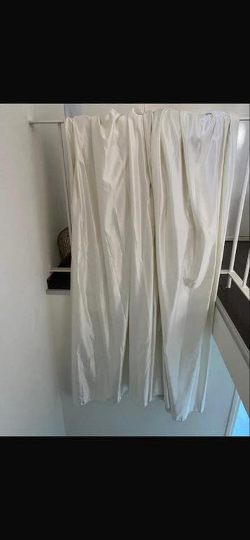 Twee mooie witte gordijnen met een lichte glans, gratis op te halen. Ideaal voor wie op zoek is naar een snelle en voordelige raamdecoratie. De afmetingen zijn: 1x lengte 186 cm x breedte 206 cm en 1x